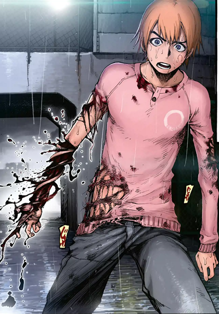 He discovered he was an Ajin after a motorcycle accident in which he revived for the first time. Since it was a rainy night and there were no witnesses of the accident, he thought he would be able to erase all traces of the accident by making it look as if the motorcycle was illegally dumped, however, he didn't know what to do with his severed arm that had regenerated.